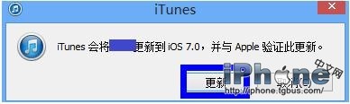 6、接下來iTunes會提示我們將會抹掉一切內容,還將會與Apple服務器驗證恢復。點擊“更新”按鈕。