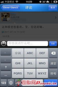 點擊屏幕下方第二個按鈕,在這裡可以查看自己的說說、日志、照片和朋友留言等。說說可以附帶圖片哦,現拍或者是使用當前相冊的內容。如果朋友對你的說說進行了評論,直接點擊好友的發言就可以進行回復,非常的方便快捷。