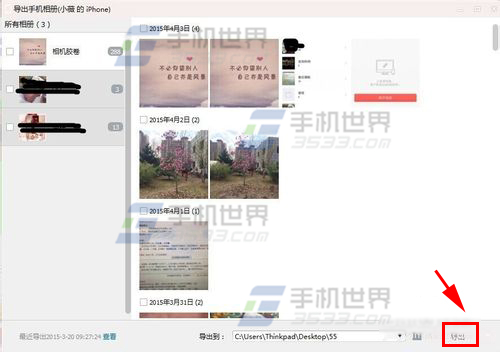 3)勾選手機上的點擊【導出】即可。(如下圖)