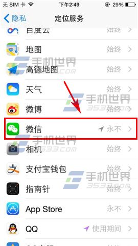2)進入後找到你想關閉定位的【軟件】進入,然後再點擊【永不】即可關閉定位。(如下圖)