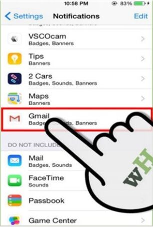 4、在iPhone設置中改變推送通知設置。進入“設置” → “通知中心”(iOS8裡是“通知”),啟用通知。點擊程序列表中的Gmail,可以允許Gmail推送橫幅、聲音、頂部等處的通知信息,具體開啟哪些位置的通知,看你個人的喜好。