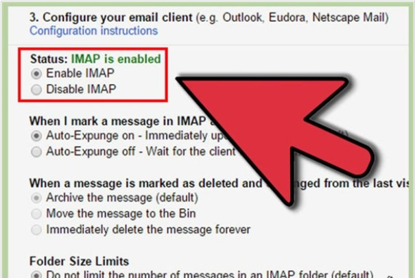 - 檢查“IMAP訪問”區中的“狀態:”,如果顯示的不是“IMAP 已啟用”,則點擊“啟用IMAP”的選項。