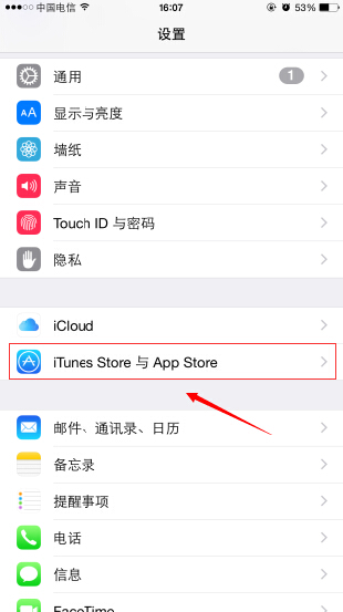 打開“設置”下拉找到“iTunes store 與app store”