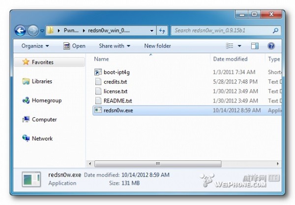 第一步:在電腦桌面創建Pwage文件夾,將下載好的最新版本RedSn0w(0.9.15b1)附件拖入其中,並解壓。
