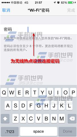 1)打開iPhone6【設置】,點擊【個人熱點】,將該功能開啟後,點擊【Wi-Fi密碼】。(如下圖)