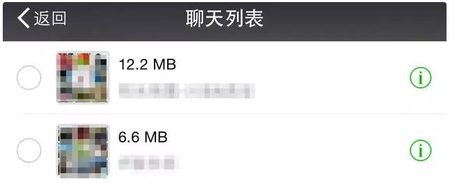 隨後可以選擇想要清除的聊天記錄,一般是哪些比較活躍的微信群消耗的空間比較大,可以根據自己的情況來選擇要清除的記錄。這裡只是以微信為例,對於其它的第三方軟件,也是用差不多的方法,用軟件自身的清理功能來清除一些無用的緩存數據。