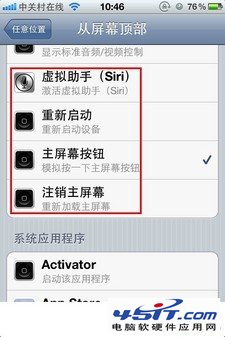 activator環境下具備很多觸發的規則。比如我想無論在任何條件下想要滑動頂部條iPhone都能回到主界面時。可以找到設置“任意位置”,activator提供八個手勢設定供用戶進行設置。這些選項將讓你選定的手勢來操作,有電話、控制、打開程序以及HOME鍵、電源鍵等等。