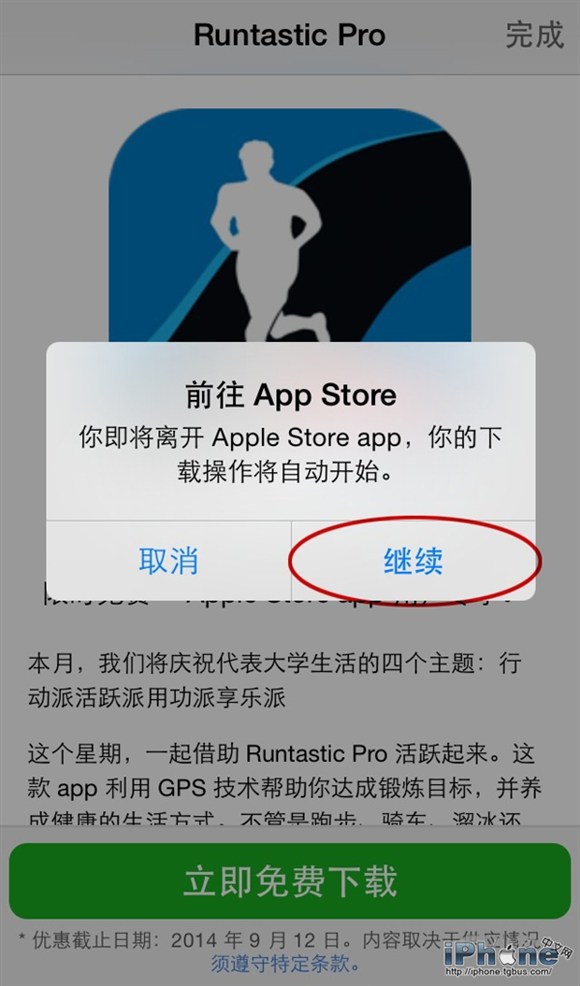 第四步:Apple Store應用程序彈出「前往App Store」確認面板,點擊右下角的「繼續」按鈕確認前往。