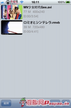 RushPlayer:界面上跟AVPlayer相似,同時支持縮略圖查看,讓我們非常的一目了然,但是在首頁我們可以看到MP4的格式丟失,同時小編發現avi的格式無法播放,看來在格式支持方面還需要更多的提升。