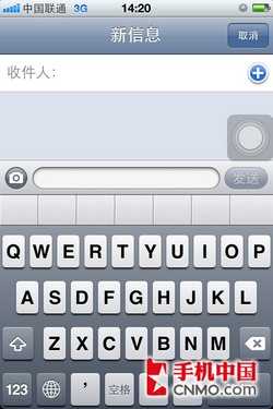 蘋果iOS在短信輸入方面與上代產品沒有太多區別, 依舊支持Qwerty鍵盤,數字鍵和手寫輸入法。用戶如果需要創建新信息,只需單擊屏幕右上角的按鍵即可跳到短信輸入界面。當用戶需要刪除信息時,只需在信息上輕輕橫向滑動,右側就會出現刪除的提示,如果用戶需要批量刪除,就點擊屏幕左上角的編輯圖標,每條信息左側就會有紅色的提示,選擇完畢後點右上角的紅色刪除按鍵即可。