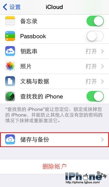 第二步:點擊選擇「iCloud」選項,然後選擇「存儲與備份」選項。