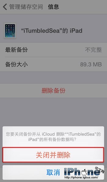 該iPad的備份文件將會被刪除,但iCloud備份功能也同時將被關閉。如果你剛好不想再備份到iCloud了,那麼這一操作可謂是一勞永逸;但如果你還是希望該設備以後再次使用iCloud備份的話,一定要記得回到「設置」裡面的相關部分再次開啟iCloud的備份功能。