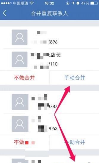 5.然後自動合並了那些符合要求的聯系人,剩下一些需要自己手動點擊合並。