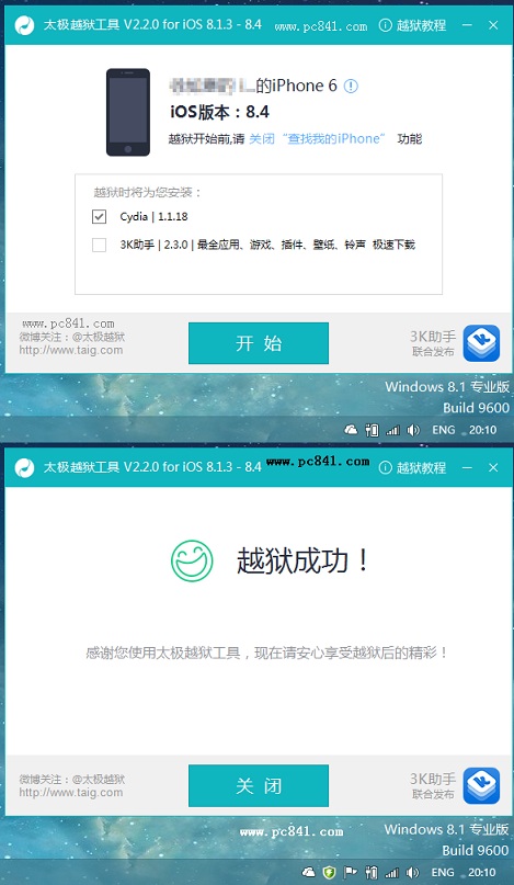 准備工作:首先要將你的設備進行越獄,iOS8.3以及昨天發布的iOS8.4都已經由國內越獄團隊成功完美越獄,這裡推薦大家使用太極越獄工具。