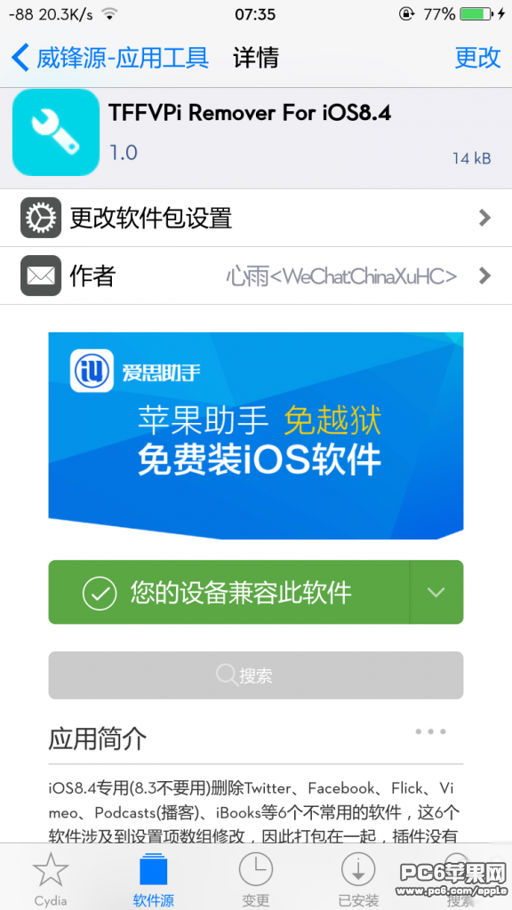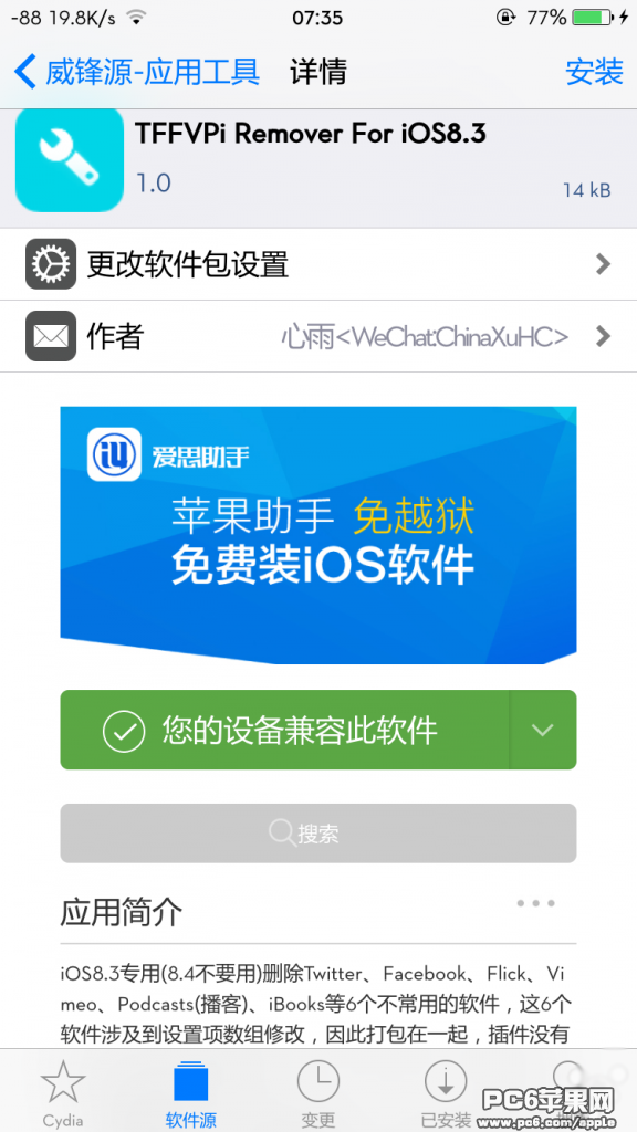這裡刪除蘋果自帶軟件的插件已經由網友打包添加到源:apt.so/aricxu,大家可以自行添加源,這裡PC6小編介紹一下: