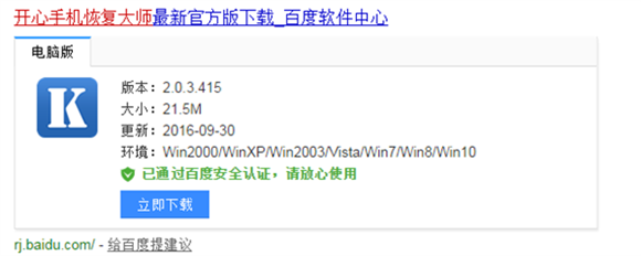 第一步:在找回被刪除的微信聊天記錄之前,我們需要在自己的電腦上先下載開心手機恢復大師這個軟件,在百度直接搜索“開心手機恢復大師”到相應的下載站下載即可;