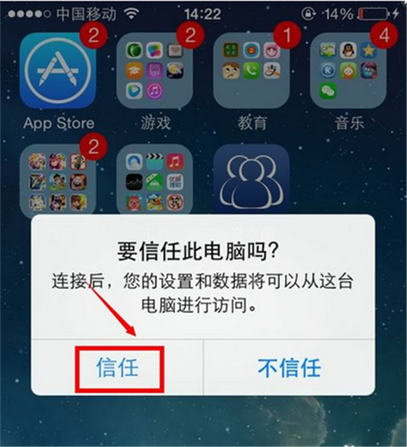 第二步:把蘋果手機連接到電腦上,然後直接運行開心手機恢復大師,如果是首次連接的話是需要點擊信任此電腦的哦;