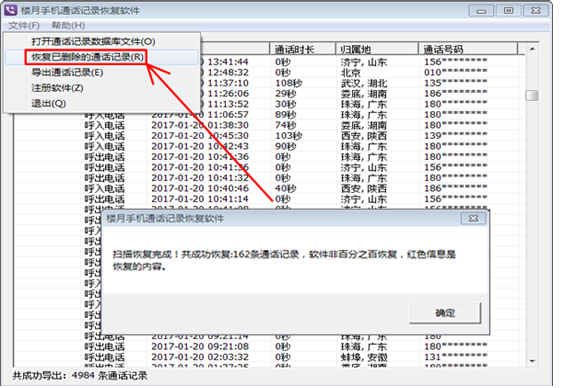 (3)最後再點擊軟件左上角“文件”中的“恢復已刪除的通話記錄”菜單就能把刪除過的通話記錄恢復出來。