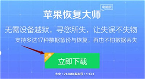 第二步、恢復丟失的iPhone微信聊天記錄之前,還需要將“蘋果恢復大師”(下載地址:http://www.9553.com/soft/39313.htm)下載至電腦上,建議進入蘋果恢復大師官網進行軟件的下載安裝,保證下載到的軟件是最新版本;