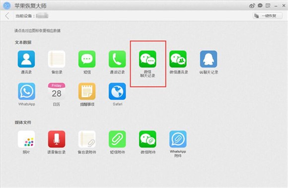 有沒有什麼微信聊天記錄恢復軟件可以幫助我們將誤刪的微信記錄內容找回呢?當然有,想小編就常年備好了一款微信記錄恢復軟件“蘋果恢復大師”,除了恢復一些必要的微信聊天記錄之外,還經常用它將一些重要的微信聊天記錄導出備份,那麼下面就以蘋果恢復大師為例給大家演示一下如何恢復蘋果手機中的微信聊天記錄!
