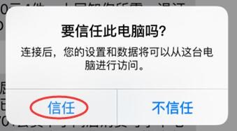 第二步、將丟失微信記錄的iPhone手機連接到電腦上,如果是第一次進行連接,則需要點擊手機提示框中的“信任”按鈕,來允許電腦對於手機系統的操作權限;