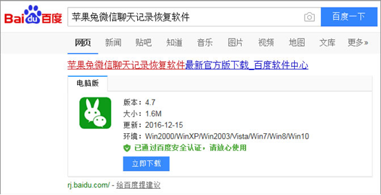 隨著中國經濟的高速發展,國產安卓手機的運行速度越來越快,界面也越來越美觀,很多以前使用iPhone手機的用戶慢慢轉投到了安卓手機的懷抱中。其實安卓手機微信聊天記錄也是可以成功進行恢復的,方法也很簡單,您只需先在百度上搜索下載“蘋果兔微信聊天記錄恢復軟件”。