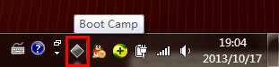 安裝好了之後,你的右下角MAC系統裡面熟悉的BOOT CAMP,出現了。如下圖: