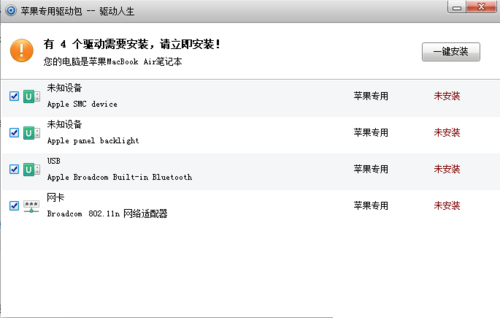 無論你的是Macbook Air還是Macbook Pro,或者是iMac一體機系列,只要是用蘋果電腦來裝Windows7等Windows系列系統,那下載驅動人生的蘋果驅動包就能一鍵解決所有驅動問題。