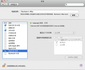 在Internet共享前打勾,設置WIFI熱點名和密碼在AirPort這個地方;