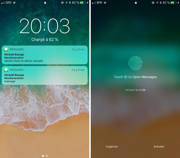 點擊通知時,新的「Touch ID」解鎖打開消息畫面