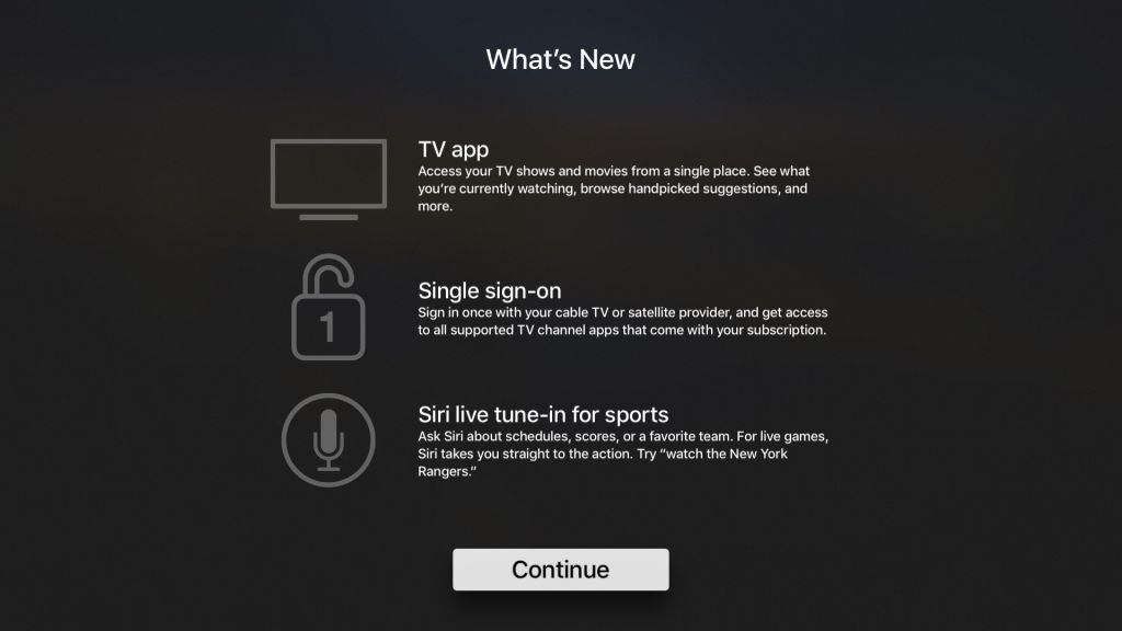 再來看看 tvOS 10.1,盡管它的更新並不如 iOS 10.2 那樣豐富,但它同樣包含了對 bug 的修復和對性能的提升。tvOS 10.1 最大的改變就是加入了全新的“電視”應用。這款全新的聚合應用使用戶可在一處觀看多個視頻應用內的電視節目和影片,另外許多應用也將會支持單次登錄功能。
