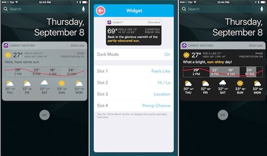 iOS10蘋果向第三方開放了更多通知相關的API接口,現在我們已經可以看到一些App利用通知中心做文章了,比如天氣應用《CARROT Weather》、星象指南《Sky Guide》、音樂雷達《Shazam》等等。