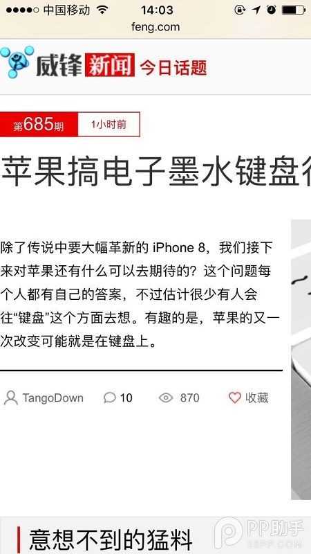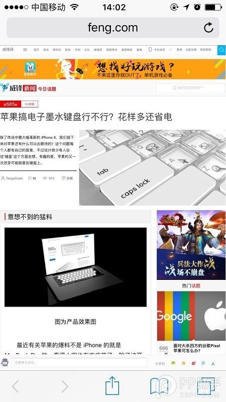 而當我們雙擊屏幕以查看文章內容的時候,Safari 會相當智能地縮放至主體文章。同一張頁面在 iPhone上雙擊放大後的效果,聚焦在文章主體內容。這也相當符合個人使用習慣。