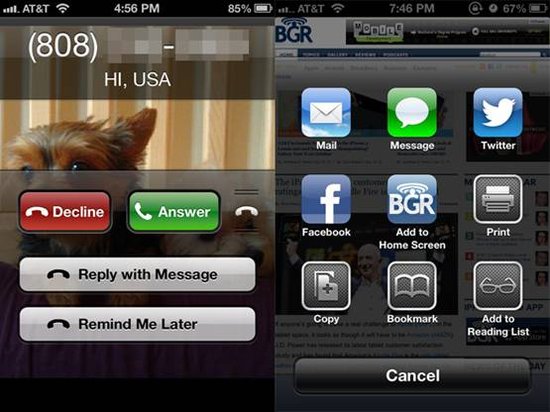 其他方面iOS 6和iOS 5的變動並不明顯,比如音樂應用的界面和撥號鍵盤都進行了小幅度的改動,相機應用的底部工具欄也由黑色替換掉了值錢的銀灰色。郵件應用加入了VIP郵箱的支持,允許用戶通過相機和照片應用一鍵插入圖片或視頻至新郵件當中。