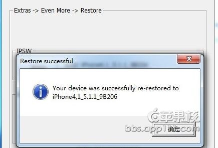 其余的工作紅雪將自動完成,請耐心等待,直到彈出如下提示,您的設備就成功恢復到了iOS6.1.3系統,可以進行越獄了,越獄之後再利用iTunes恢復數據即可。
