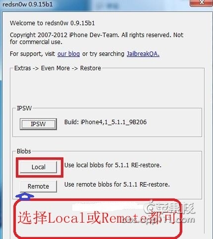 4、此時,你可以選擇“本地(Local)”,浏覽並打開小雨傘保存的SHSH文件,如果你本地沒有,請選擇“遠程(Remote)”,直接在Cydia服務器上下載對應的SHSH: