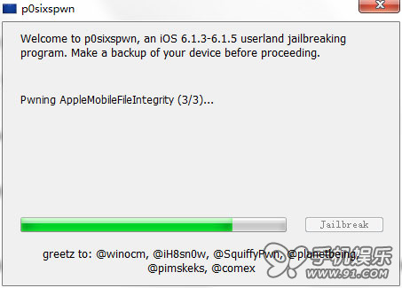 2.《p0sixspwn》v1.0.7越獄工具支持所有iOS設備:iOS6.1.3、6.1.4、6.1.5固件越獄