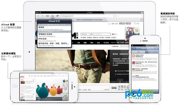 iOS 6 為你的 iPhone、iPad 和 iPod touch 帶來更佳的網絡浏覽體驗。iCloud 標簽可記錄你在設備上打開的頁面,因此你可以先在一部設備上開始浏覽,稍後再使用手邊的任何一部設備,從上次暫停的地方繼續浏覽。Safari 現可在閱讀列表中保存網頁,而不僅是鏈接,因此即使你沒有互聯網連接,也能繼續閱讀網頁3。當你向 eBay 或 Craigslist 等網站發布照片或視頻時,不用退出 Safari 即可拍照或攝錄,也可以從相機膠卷中選擇照片。如果你非常想看到整個畫面,可以將 iPhone 或 iPod touch 轉為橫向模式,並輕點全屏圖標,即可全無干擾地查看網頁。