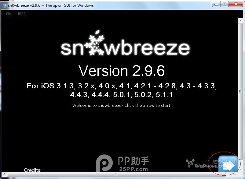 sn0wbreeze 會自己識別,確認無錯誤,點右下角的箭頭