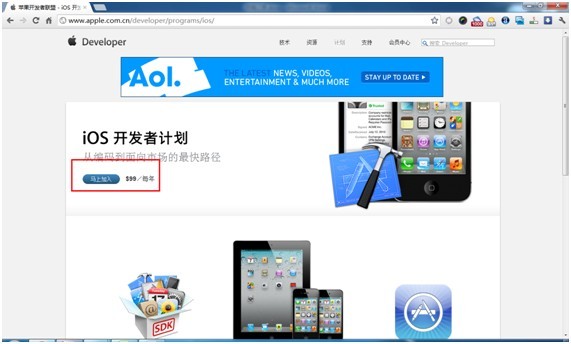 到網頁底部,點擊iOS開發者計劃鏈接