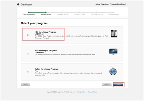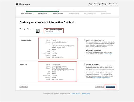 選擇iOS Developer Program,然後Continue到下面的review畫面