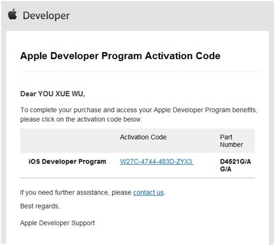 如果您需要回復我們時,請您將以下的Follow up number添加到您的電子郵件內容裡面。 Follow Up: 221571059 Re: iOS Developer Program 您好, 我們是蘋果開發者支持部門。 關於您申請的開發者計劃,我們需要跟您聯絡。請您參照以下網站聯絡您所在地區的開發者支持電話號碼∶ 聯絡時請說明您的Enrollment ID: 828JH7QQK3 以及Follow-up號碼:221571059 感謝您的協助。 KennethApple Developer Support 參照郵件內容的鏈接中的對應電話號碼撥過去。