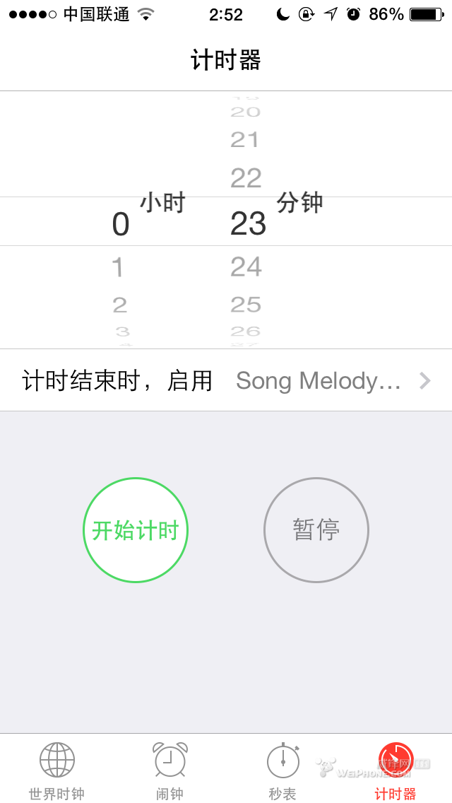 同樣在時鐘裡,計時器的選時界面上的”小時“和”分鐘“有稍微向上方移動了一點點,其實這樣更能讓人去思考到,我到底需要計時多久