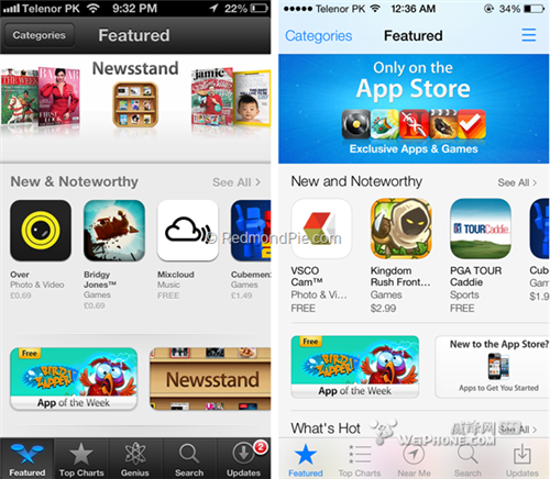 現在問題來了,吐槽 iOS 7 新界面的大多數都是手持一部或多部蘋果設備的用戶,畢竟大家都已經對傳統界面習以為常。那麼對於一個完全沒有接觸過 iOS 的消費者來講,他會在 iOS 6 和 iOS 7 之間進行怎樣的選擇?如果你身邊有這樣的朋友,不妨讓他來看看下面的這些對比圖。