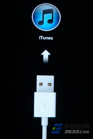 4、在同時按住HOME鍵跟電源鍵至關機狀態下後,送開電源鍵(平時開關機的按鍵),【注:HOME鍵還是持續按住!】等待10秒左右,等待itunes連接信號。