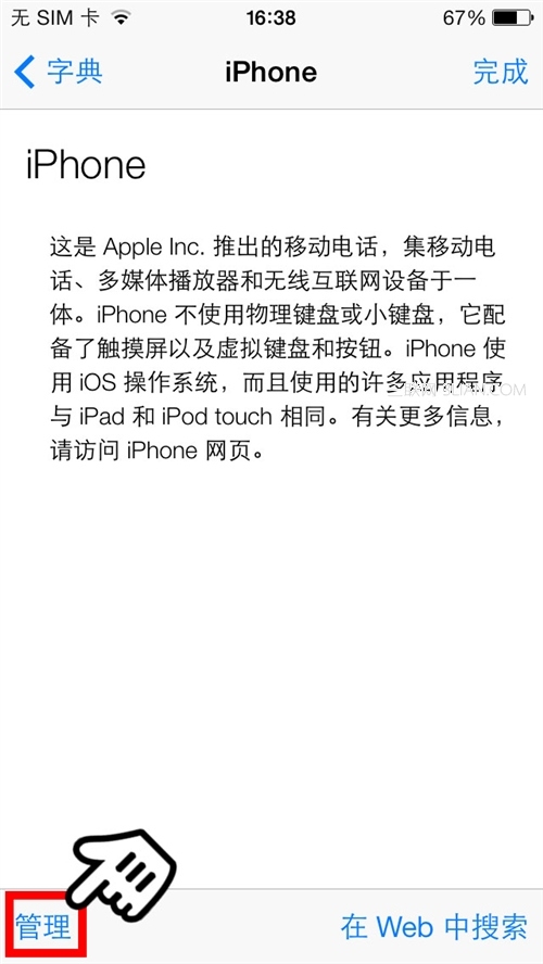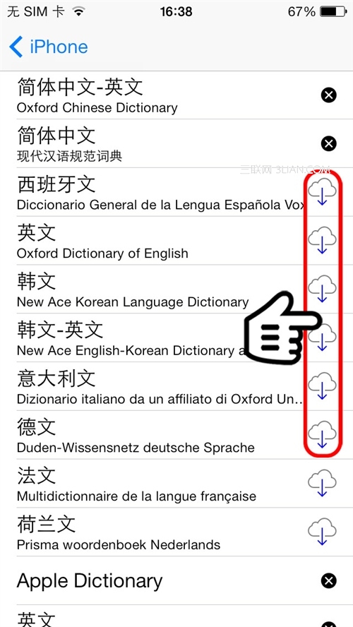 iOS7系統還支持添加更多的字典哦,點擊上圖左下角的“管理”,選擇你需要的字典下載吧: