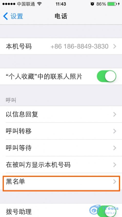 點擊:設置--電話--黑名單--新增