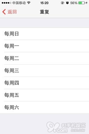 iOS7鬧鐘介紹三、如何修改鬧鐘重復時間?