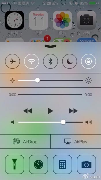 iOS 7新增了一個很棒的功能,叫做控制中心(Control Center),一揮手即可進入,這裡有諸多經常使用的配置功能,比如開關飛行模式,Wi-Fi設置,藍牙,亮度等等。這個功能終於來了,許多iOS用戶都曾請求蘋果加上它。