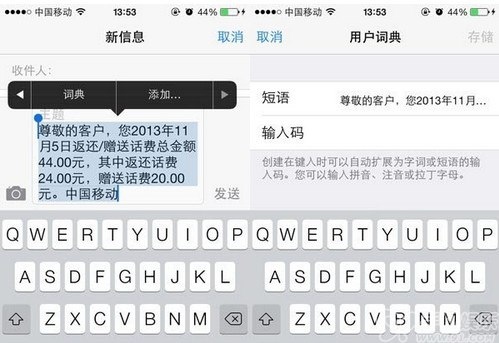 iPhone其實有很多挺人性化的設計在裡面的,不過很多的用戶都沒有發現這些技巧,還停留在基本的使用功 能,比如果經常需要使用到的地址信息、轉賬卡號等還需要一個字一個字的打出來那你就OUT了,趕緊學習一下這個用戶詞典技巧吧,有助你提高各種拼寫效率。